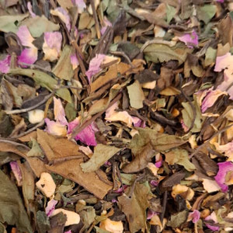 Zutaten: Weißer Tee (62%), Apfelstücke weiß, Zitronenschalen, Rosenblütenblätter, natürliches Aroma